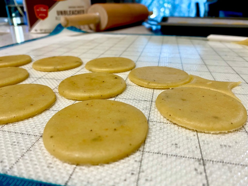 Cut into 1-inch circles using round cutter or cut into squares using pizza cutter.