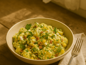 I made this one on instinct — opening the fridge, trusting my hands, and letting the herbs lead. The potatoes were still warm when I stirred in the sour cream and tarragon, and something about it felt like a hug from my early kitchen days. It’s not flashy, but it’s honest — a quiet little bowl of comfort dressed in herbs and love.