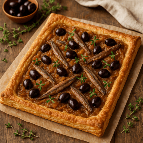 Rustic, briny, and kissed by the Mediterranean sun — this tart is a Provençal apéritif staple.